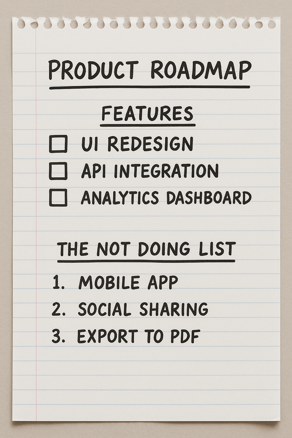 Here’s the thing: a product roadmap is never meant to capture every single workstream. But when something isn’t listed, there is often a hidden assumption that the items that are not listed must be a “small thing” that’ll get done anyways. By clearly stating what we’re choosing not to do, we eliminate the illusion of hidden work and make trade-offs visible. It encourages further conversations around items missing from the roadmap and “The Not Doing List” to ensure there is clarity of the full scope of work.